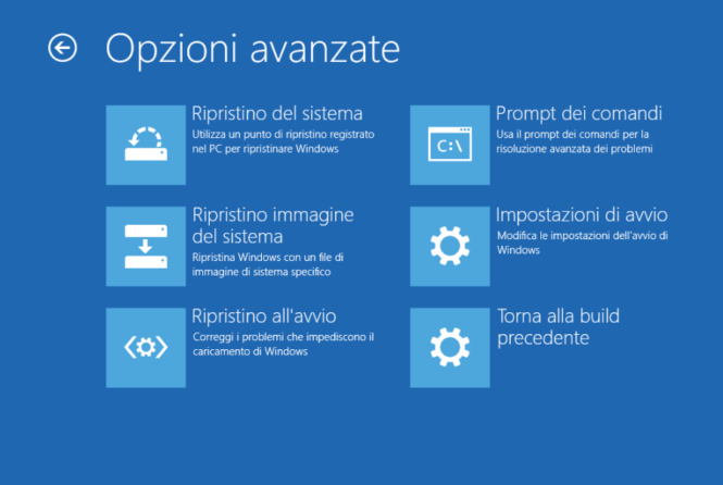 ☛ 2. Andare a Ripristina il computer -> Risoluzione dei problemi -> Opzioni avanzate -> Prompt dei comandi.